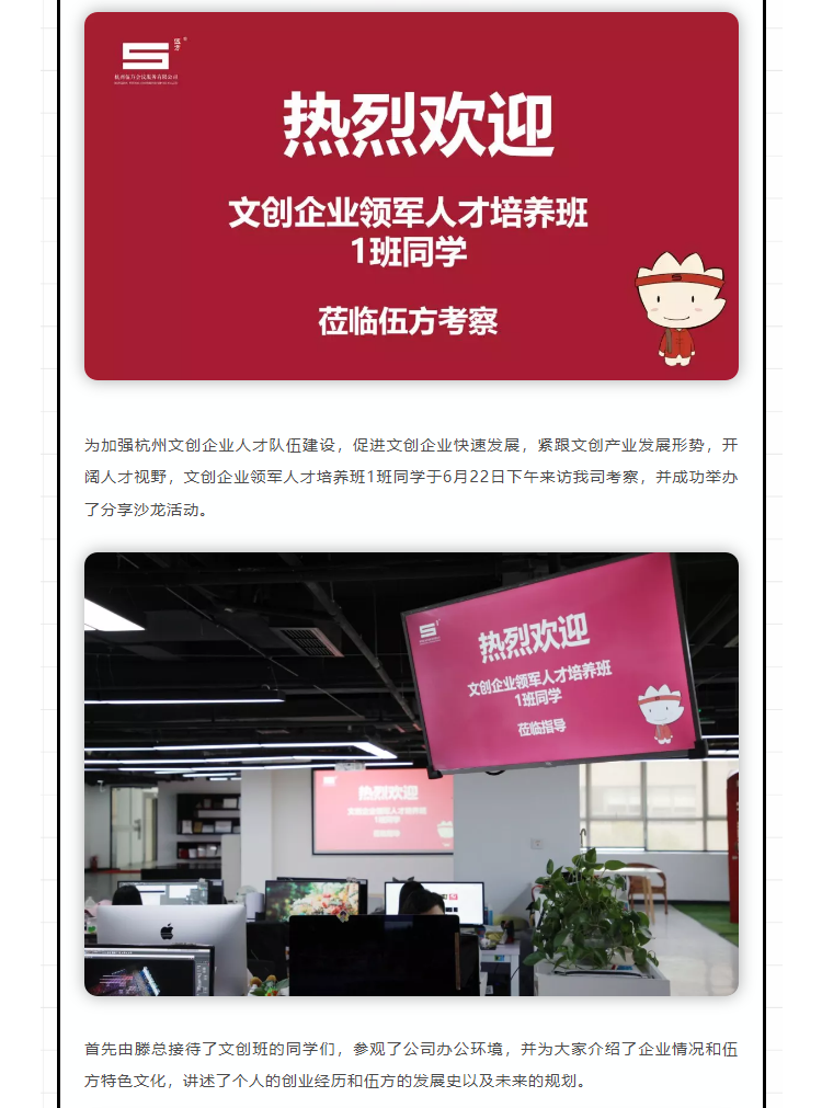 伍方資訊丨杭州文創(chuàng)企業(yè)領(lǐng)軍人才培養(yǎng)班1班同學來訪考察