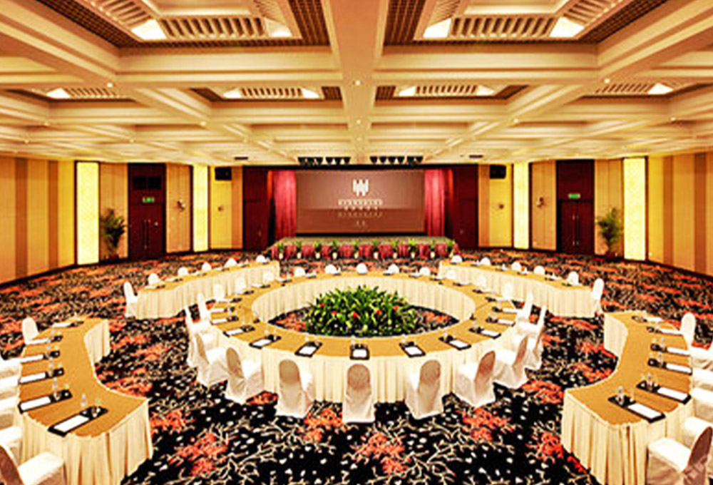 酒店擁有1780平方米的無柱式超大宴會廳、可容納千人的劇院式報告廳、城中獨有的環(huán)形峰會式會議廳、新聞發(fā)布廳和20多個不同規(guī)模的中小型多功能廳,為各種規(guī)格會議以及婚宴提供多樣化選擇。